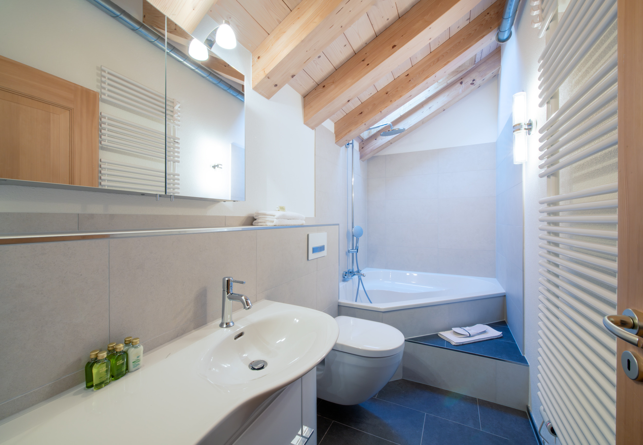 Das Chalet Belmont Penthouse bietet ein stilvolles Schlafzimmer mit Kingsize-Bett (180x200 cm) (auch möglich als zwei Einzelbetten (je 90x200 cm)), das über ein eigenes Duschbad verfügt.
