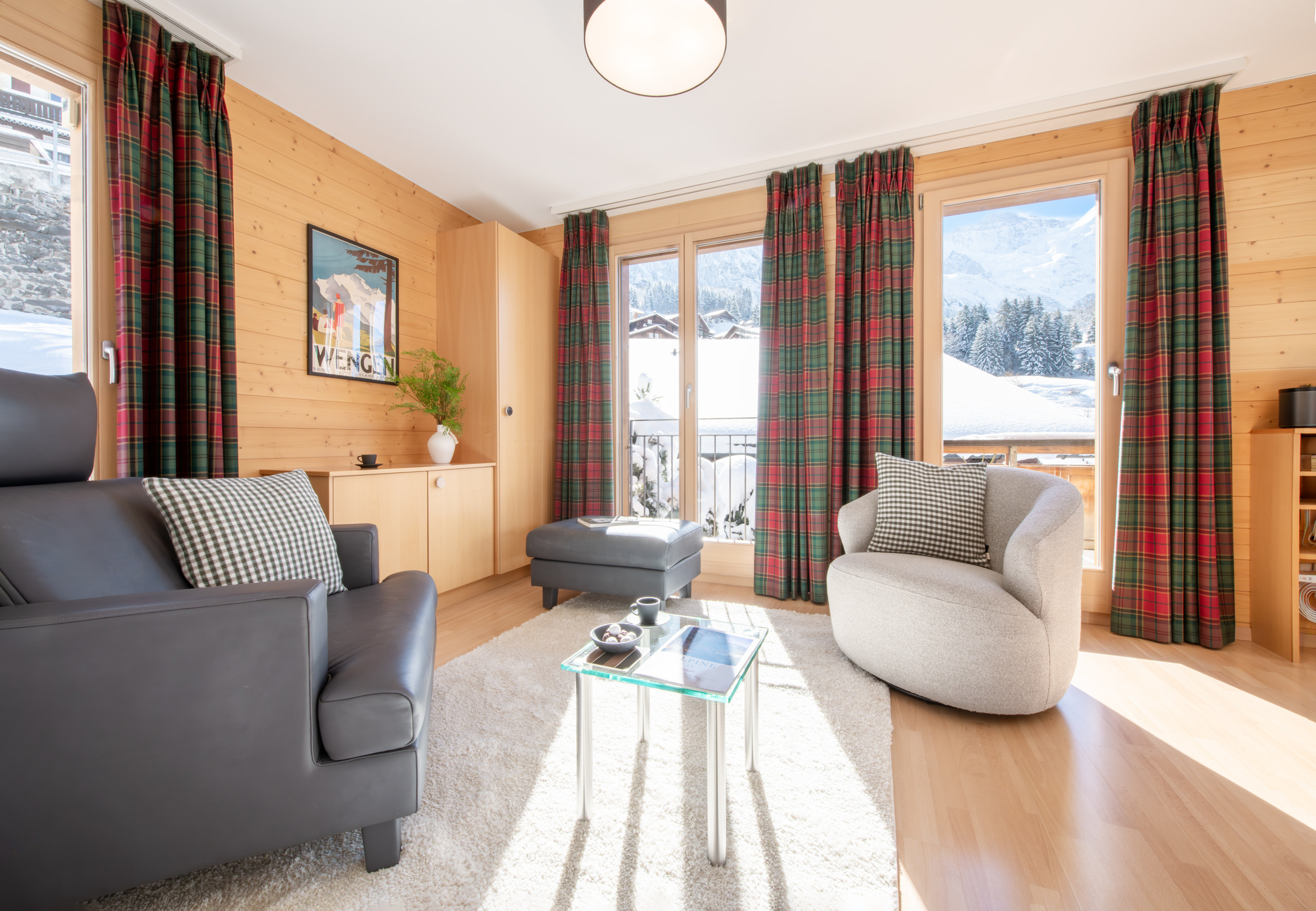 Idéalement situé à 100 mètres de la gare ferroviaire de Wengen, cet appartement au Chalet Sonneck récemment rénové et élégant avec jardin est parfait pour les familles et dispose de parquets en chêne suédois, créant un espace de vie ouvert contemporain et attrayant. Le village sans voiture de Wengen est accessible par train depuis Lauterbrunnen.