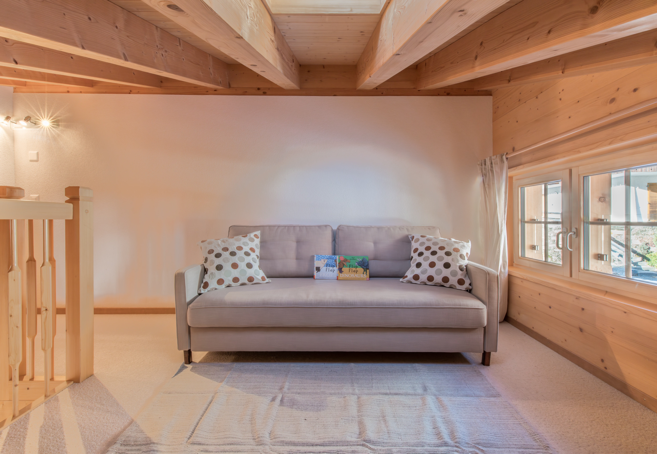 • Gallery: The large gallery space is reached via a pull down wooden stairway and offers a separate sleeping area with doubled bed (140x200cm) for 2 further guests.