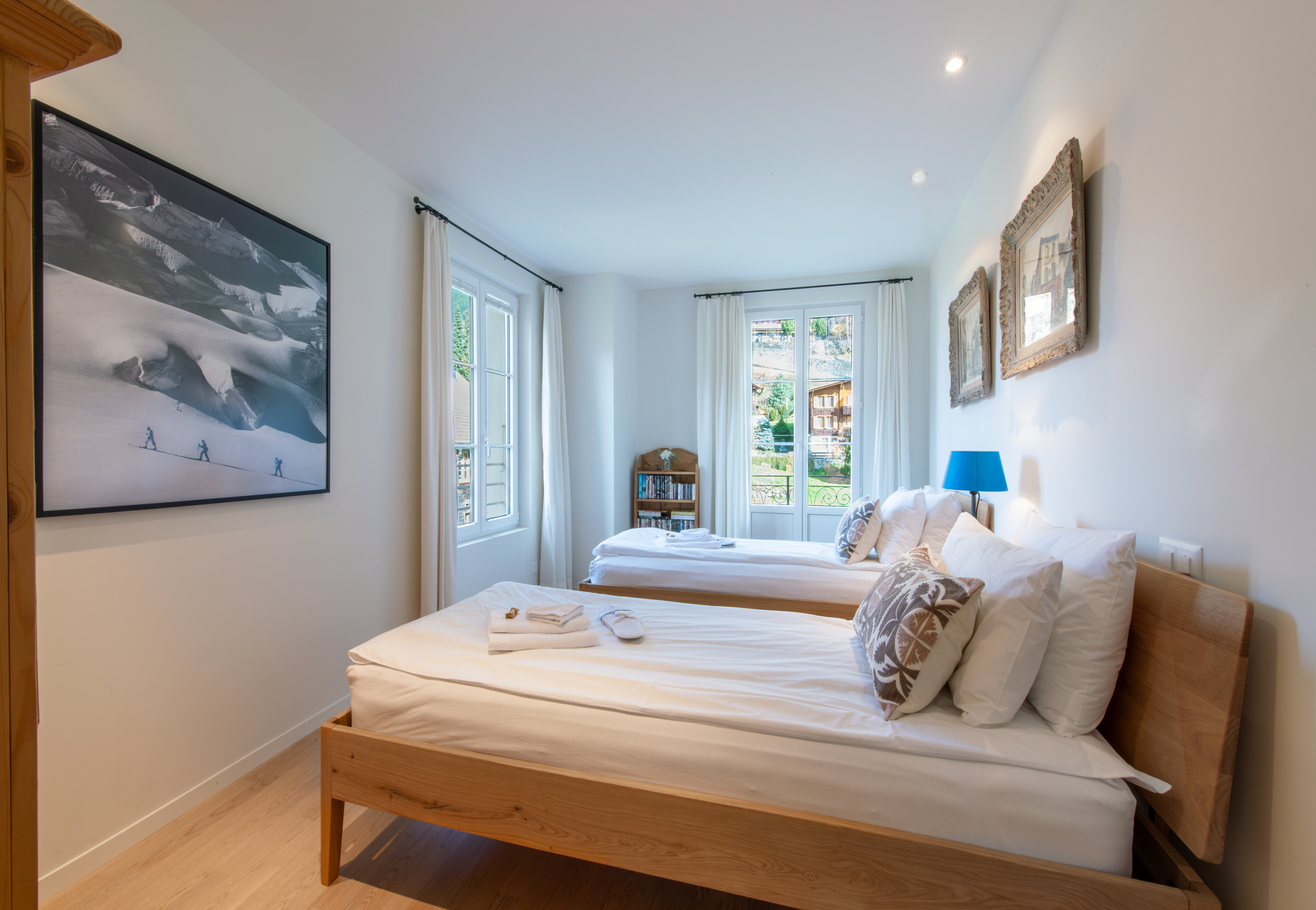 Our luxury one bedroom apartment on the first floor of Les Residences Waldbort provides a warm blend of rustic charm and modern amenities which combine to offer a perfect mountain retreat. The recently newly built chalet is centrally located just a short walk from the village mainstreet and 30 meters from the ski piste. Access to the car limited village is by train from Lauterbrunnen.