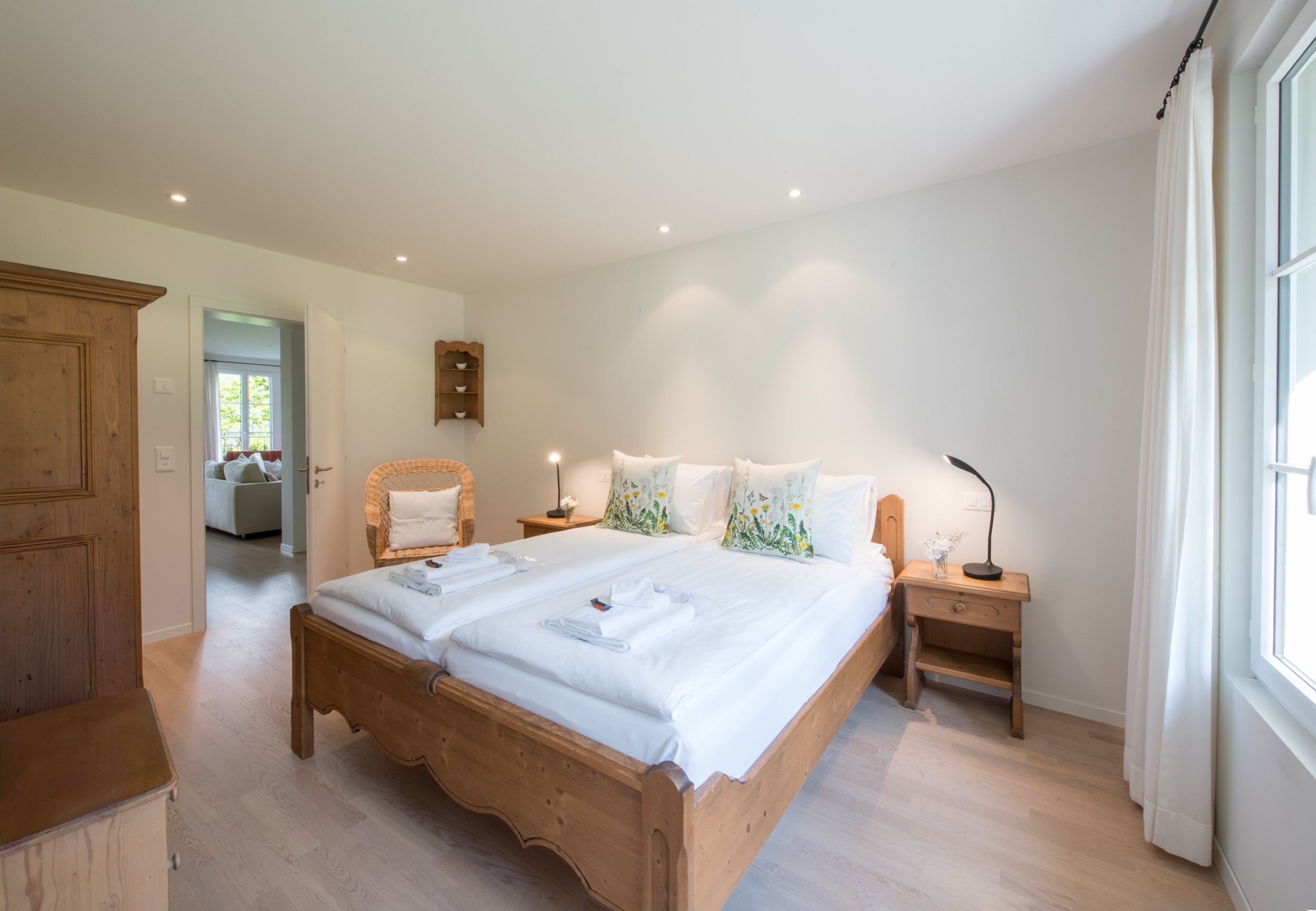 • bedroom with queen-sized double bed (160x200cm) in a leather frame