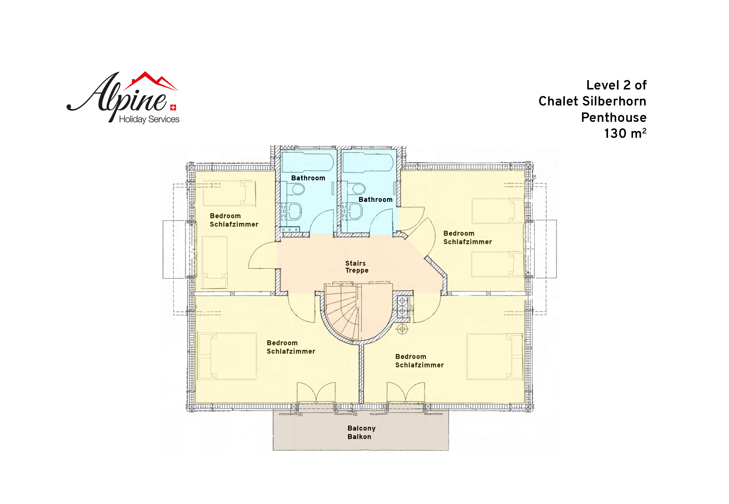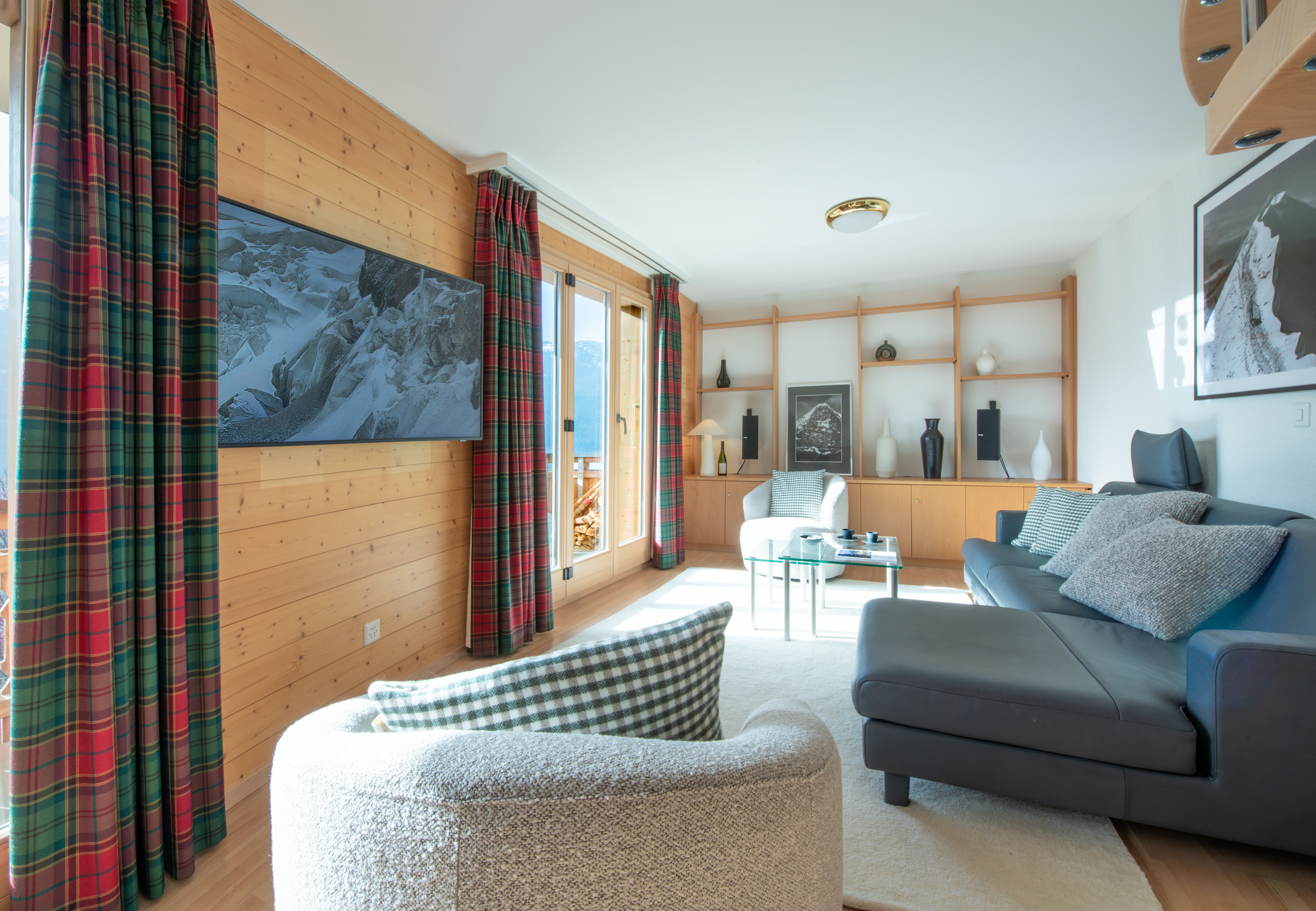 Plan your holiday escape to Wengen in this distinct penthouse apartment in Chalet Millennium situated an easy 290 meter walk from the village main street and train station along a mostly flat path. With 3 bedrooms, 2 bathrooms, kitchen diner, open plan living – dining area with mezzanine level and balcony this Wengen property is a spacious accommodation for up to 8 people.