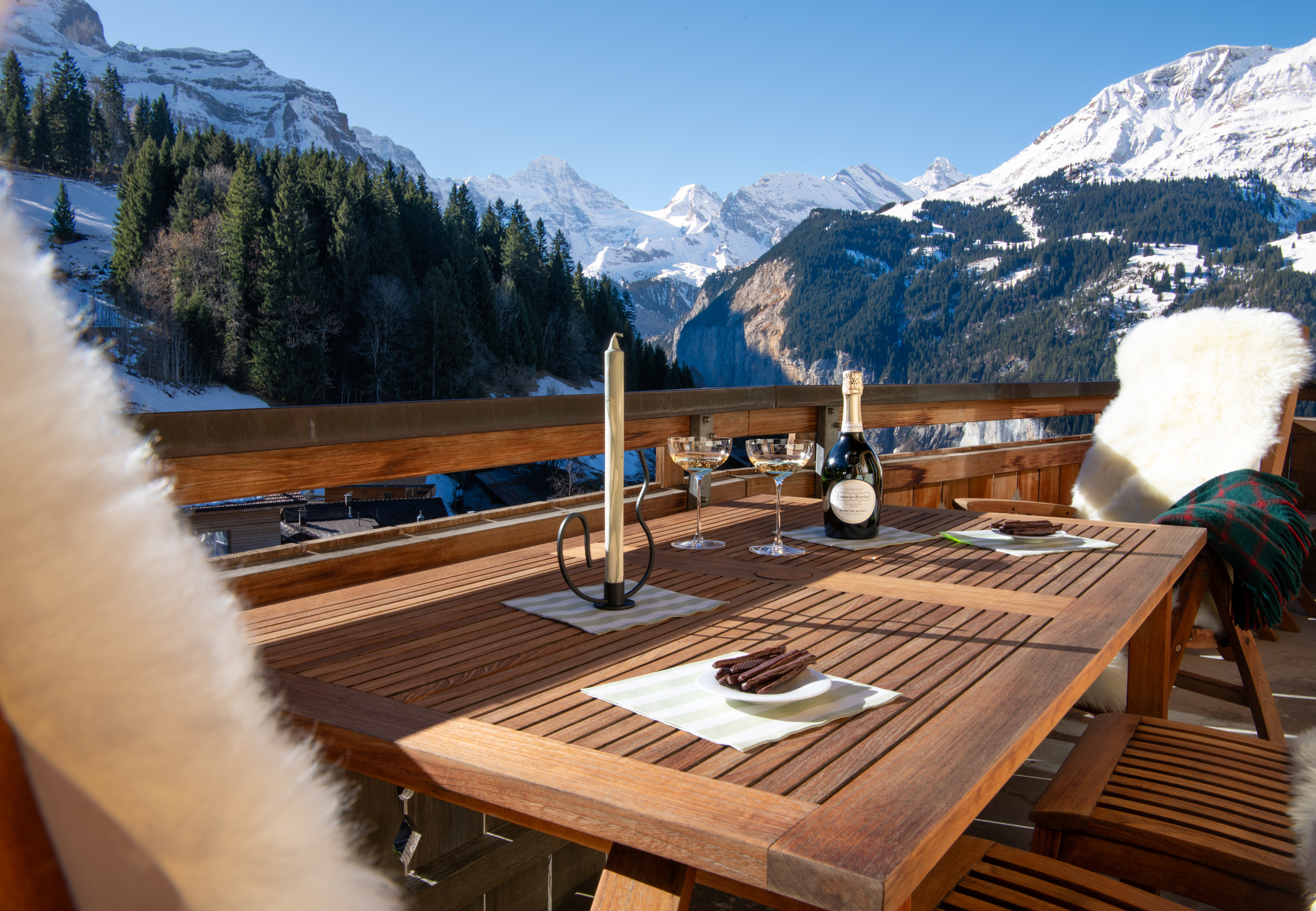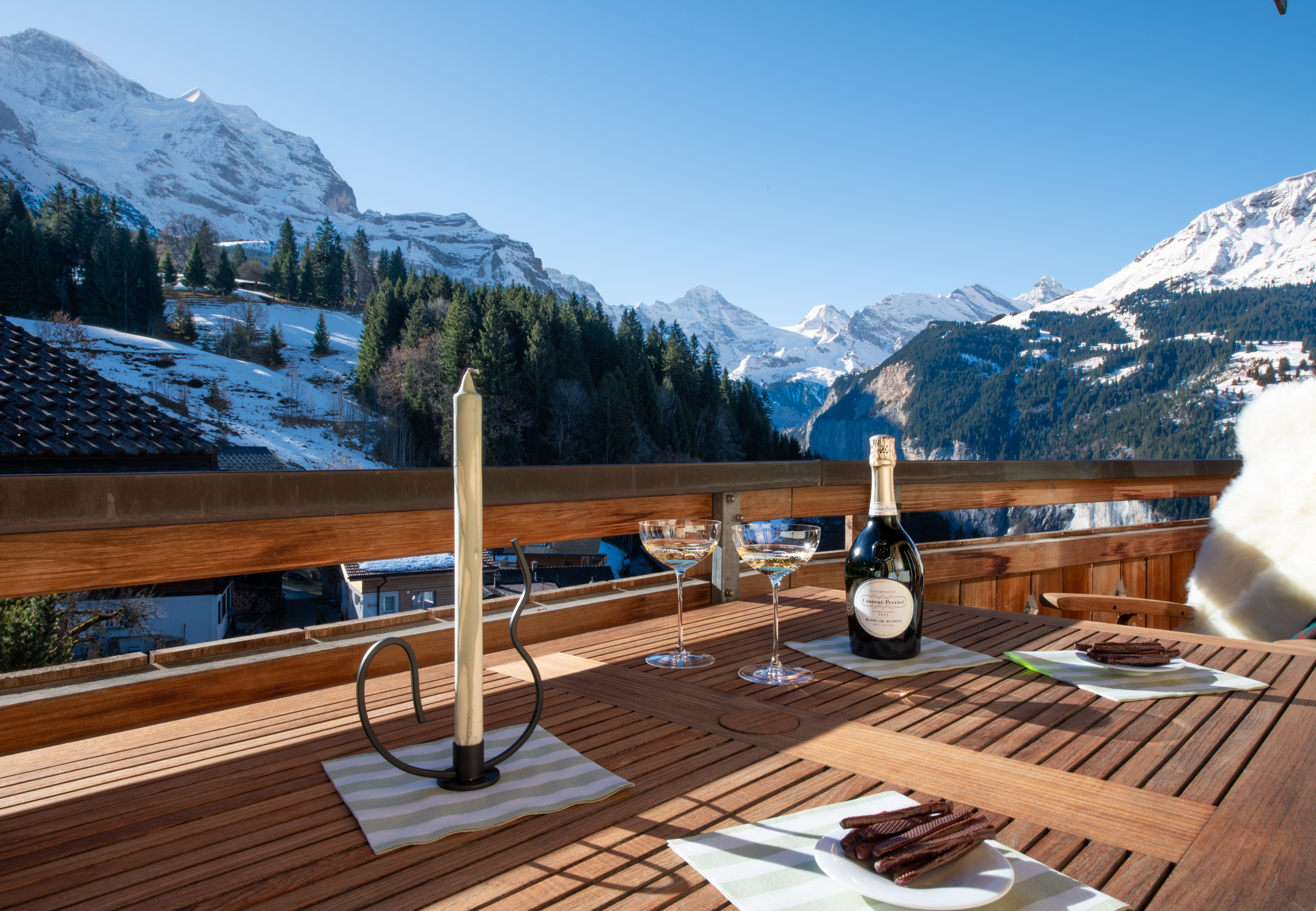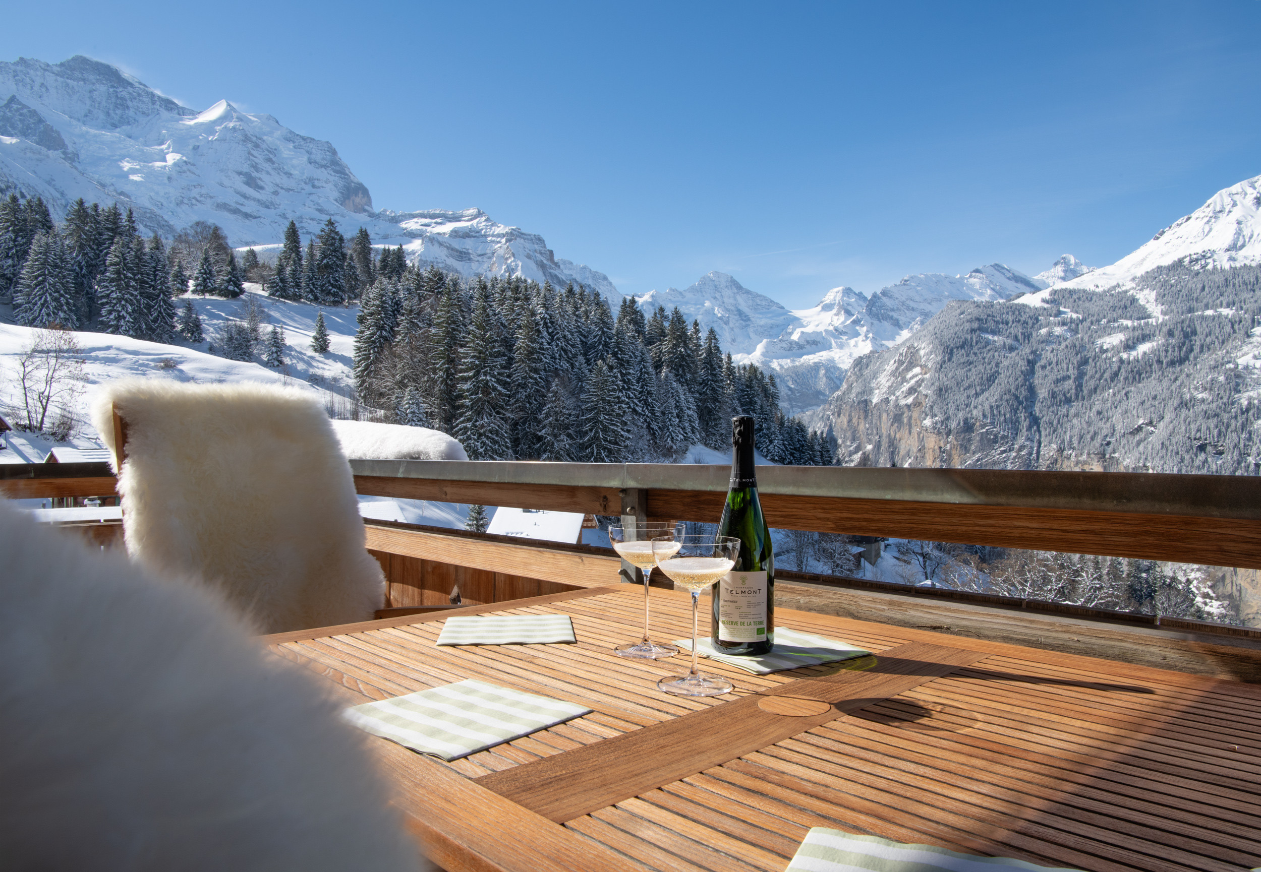 • newly renovated, stylish and contemporary 3-bedroom, 1-bathroom Wengen accommodation with balcony and garden featuring stunning views