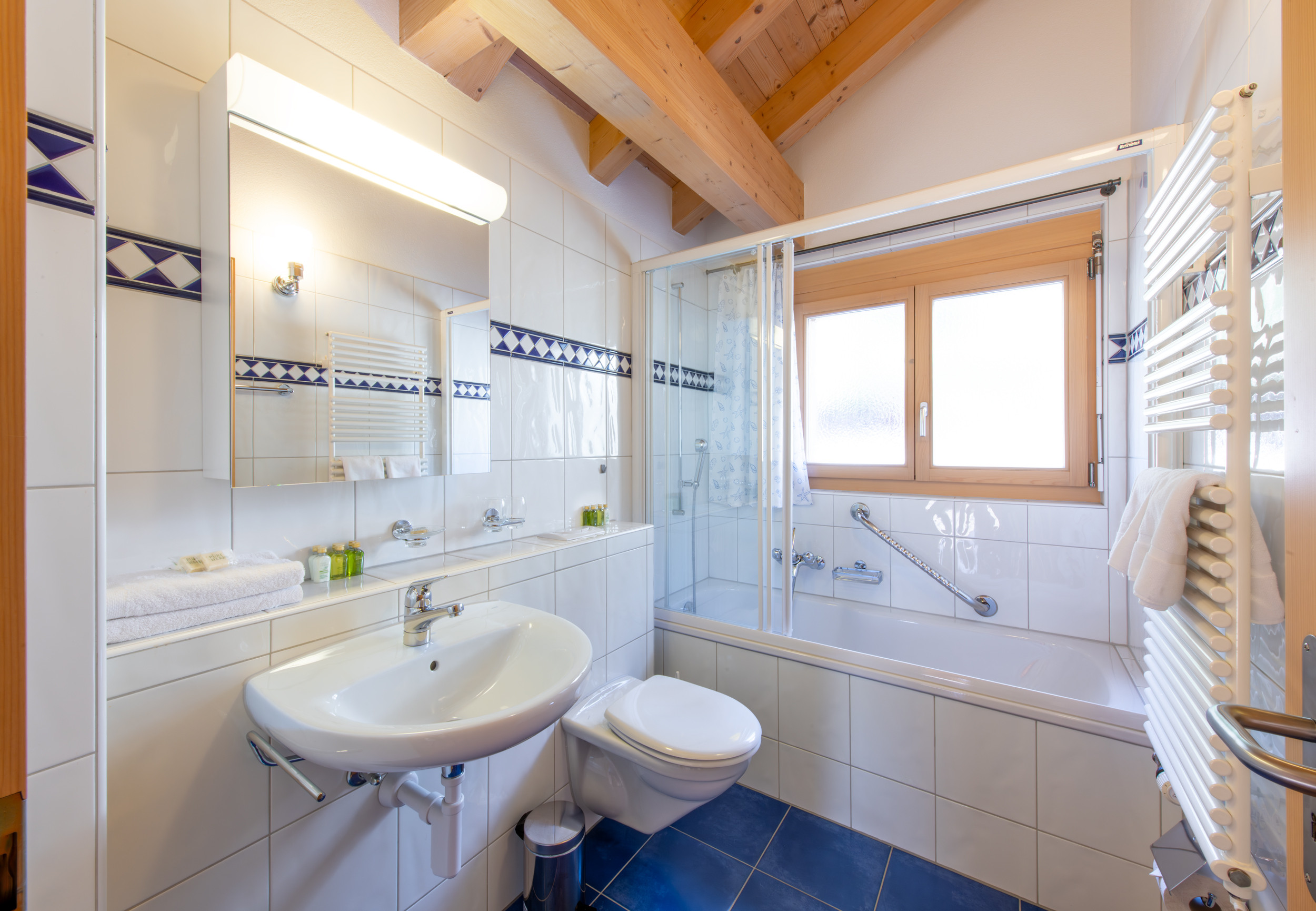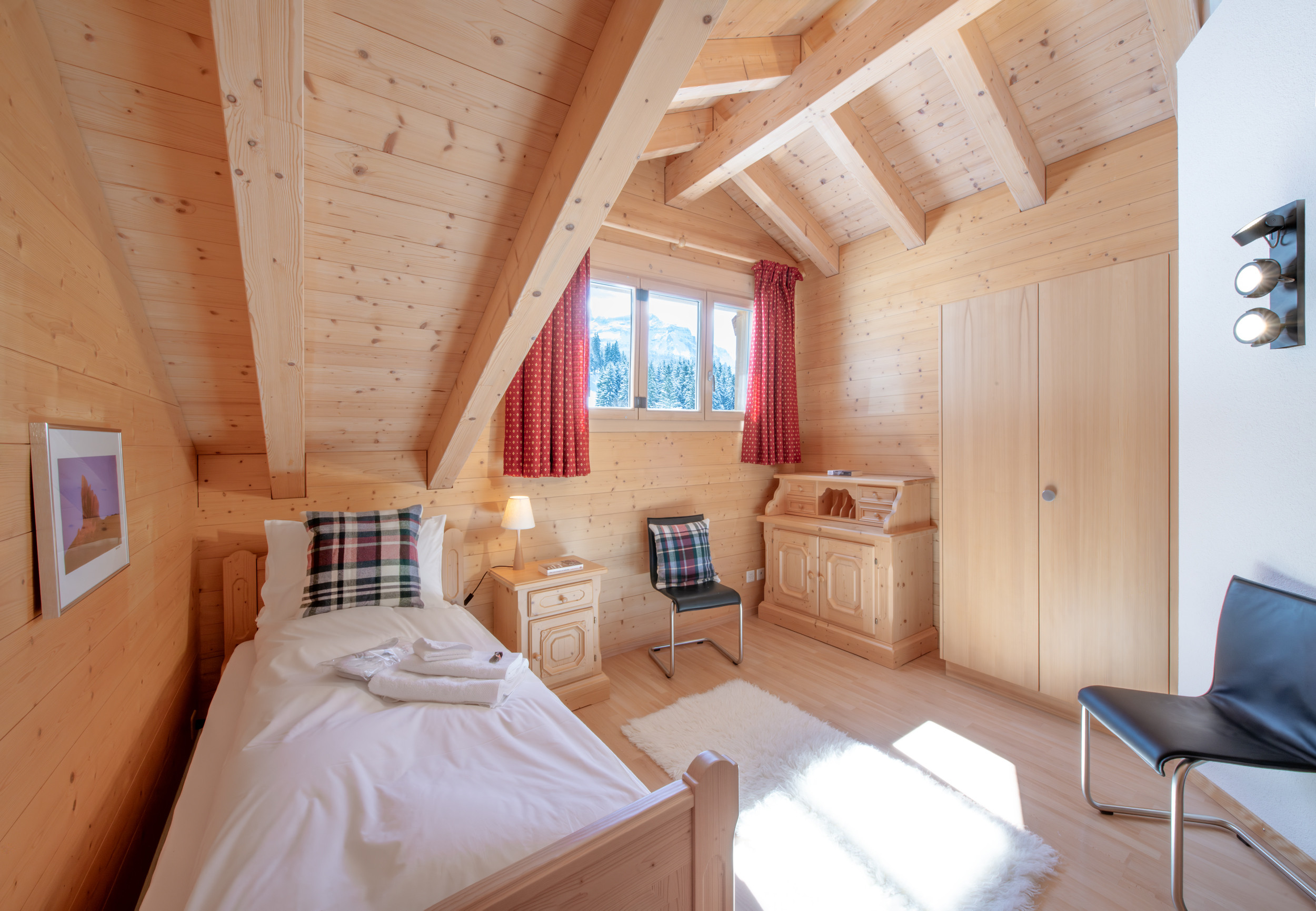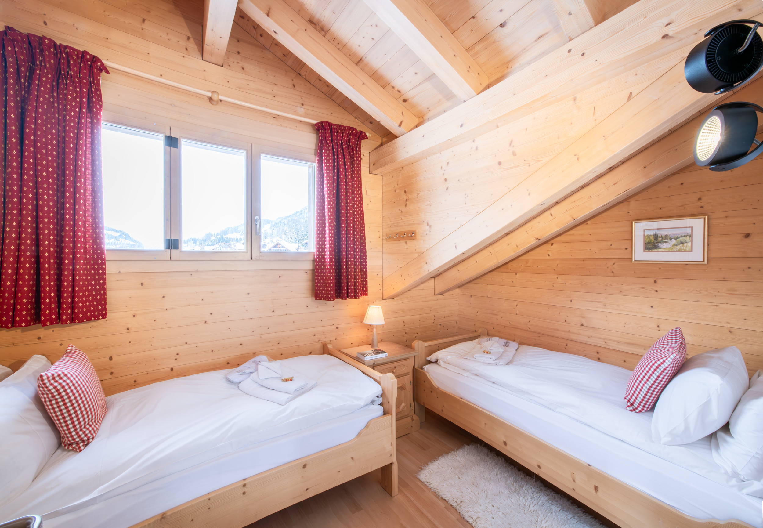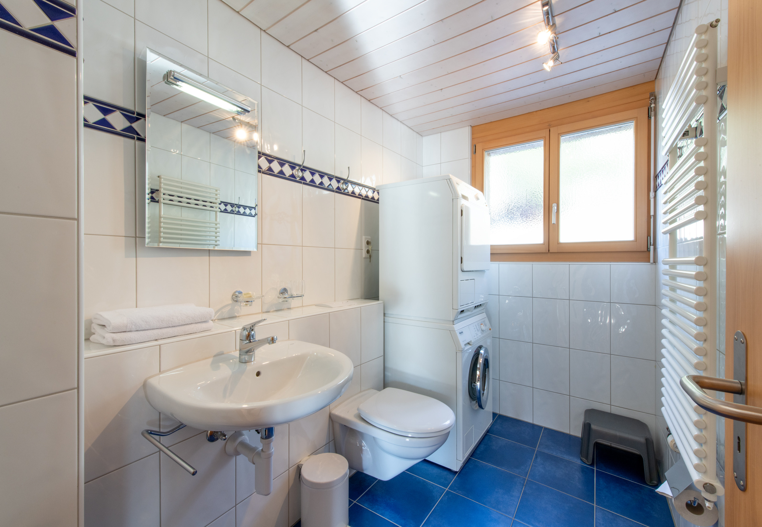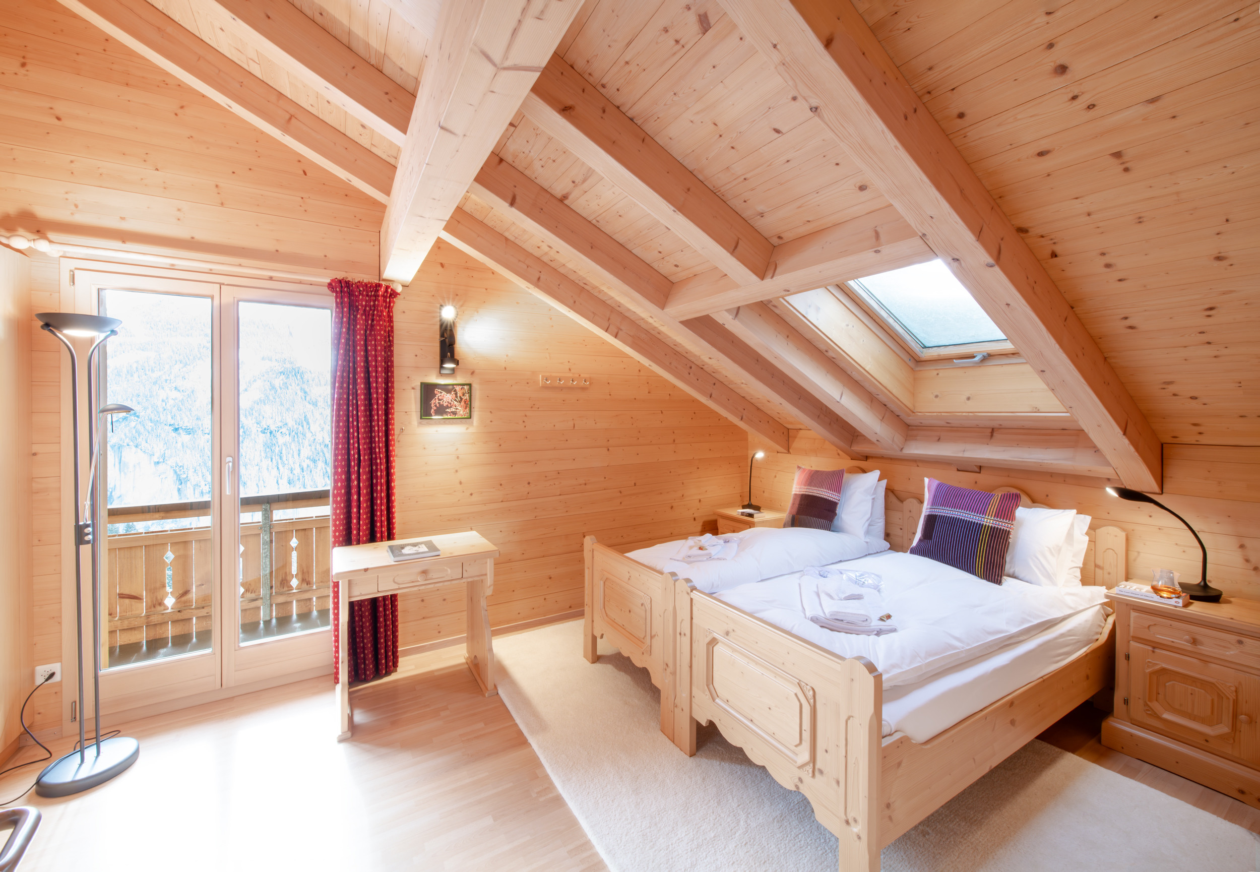 The master bedroom with walk in wardrobe offers direct access on to the west facing balcony with views of the Lobhorn and surrounding mountains and is equipped with a King-size double bed (180x200cm) whilst the second bedroom features 2 twin beds (90x200cm). The sizeable third bedroom accommodates up to a further 4 people in a combination of four beds (90x200cm).
