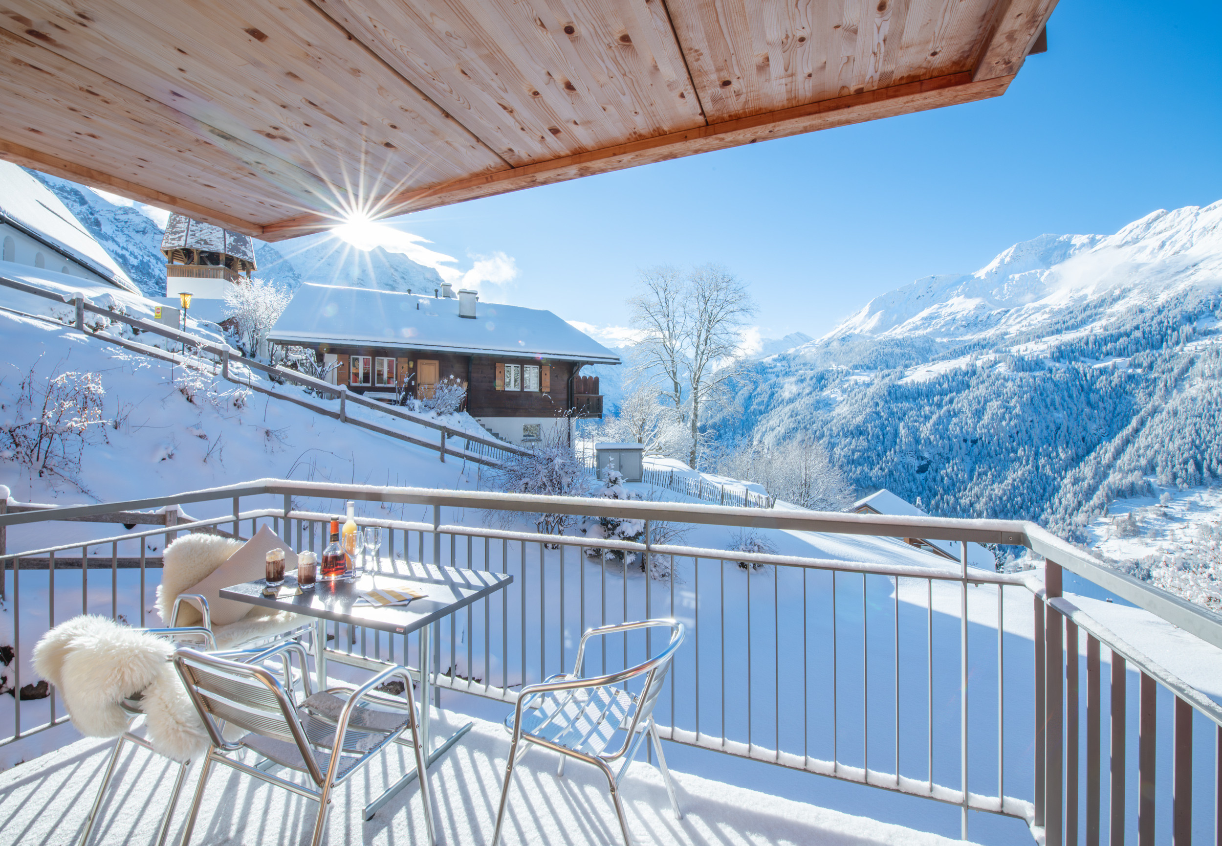 Chalet Wyssbirg is a very nice stay. It's two stories, with a large living room on top, and the two bedrooms below. It has very nice finishings, two very nice bathrooms, and a full kitchen. Views are quite nice as well. Btw, just next door is a church and it has several benches outside that have the best view of the valley, hands down. Grab a book and enjoy. :)